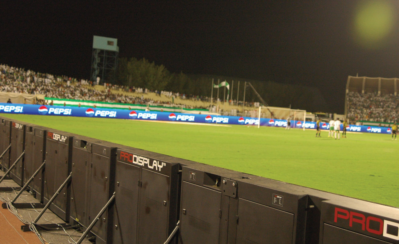 Bringing sports stadiums and arenas into the 21st Century, Pro Display’s LED Perimeter Advertising Systems allow for vivid and exceptionally bright moving images to be displayed as pitch side advertising. An obvious upgrade from the static perimeter systems traditionally seen, these screens offer the opportunity to deploy dynamic and effective advertising in your stadium using the very best LED screen technology on the market, helping you get more from your advertising efforts.