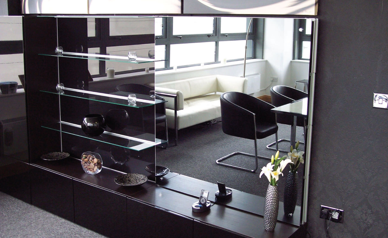 Not only can our mirror overlays be made to measure, but they can also be oversized to create stunning floor to ceiling feature walls and custom shaped conversion pieces, camouflaging your TV when turned off whilst creating a statement interior focal point in your home. We can also produce interactive mirror overlays, ideal for commercial applications in retail and hospitality environments that want to increase customer engagement and drive sales.