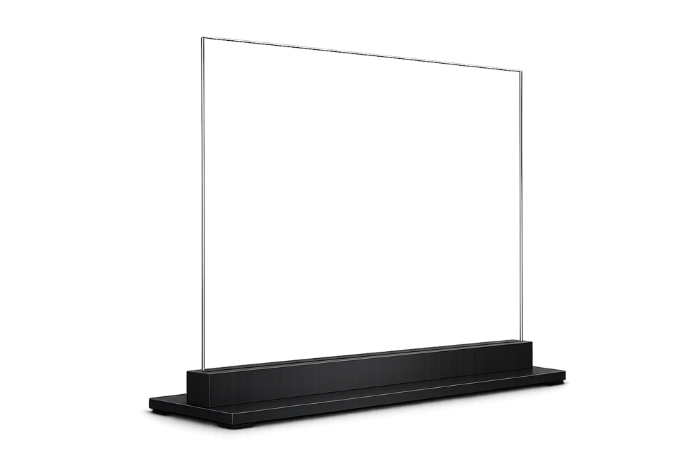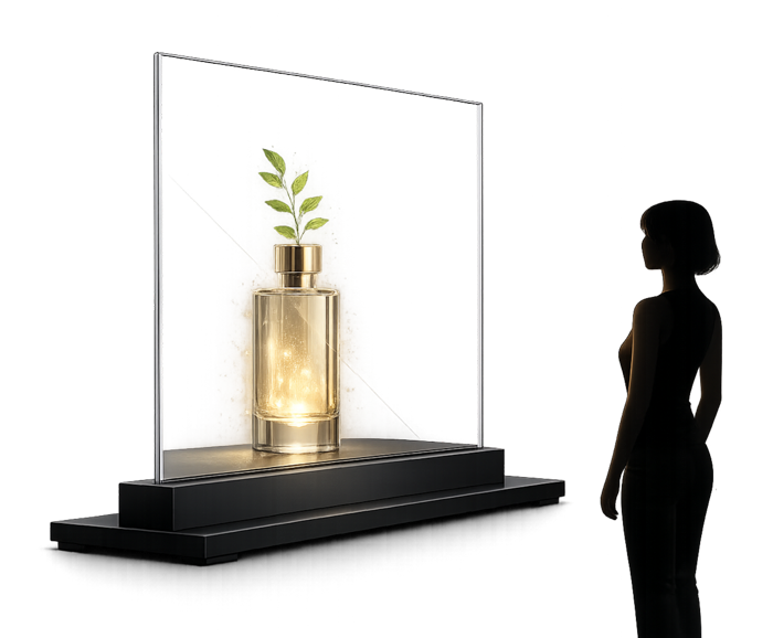 A Free-Standing Transparent OLED Display is a self-contained transparent screen designed to stand independently on a desk, counter or display surface. Unlike integration panels, these units include a built-in base with integrated power and AV connections, making them a ready-to-use transparent OLED digital signage solution for retail displays, exhibitions and product showcases.