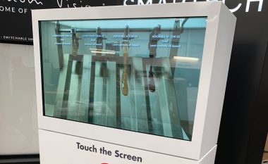 Until recently, Transparent Display cases have been manufactured as a complete surround for the screen, however recently we’ve completed several projects that experimented with different configurations and light sources to produce the same high quality displays. One such bespoke project included a custom built steel totem with an integrated transparent touch screen at the centre of the display. The housing for the display contained clear acrylic side panels so the contents of the box could be seen from wider viewing angles, with a more powerful LED light panel integrated behind the display to compensate for the light escape on the clear panels.
