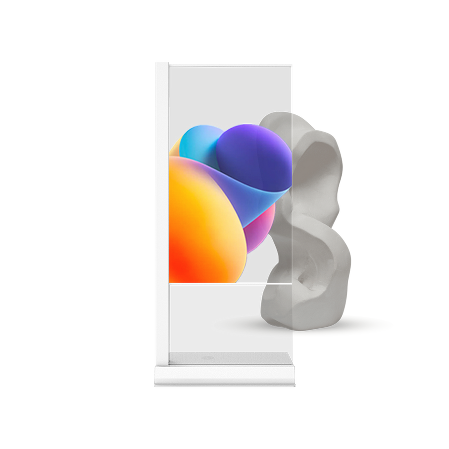 It’s a digital display where the screen itself is highly transparent, allowing viewers to see through it to the environment or product placed behind the screen. It uses Organic Light-Emitting Diode (OLED) technology, meaning each pixel produces its own light. This eliminates the need for a backlight, which is what makes traditional screens opaque.