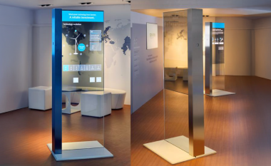 Dynamic glass displays that offer a stunning blend of digital content and the real world behind them.