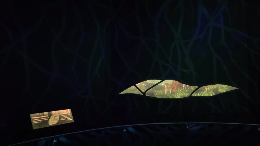 Next, we go “Under the Forest” where audiences can explore the concept of the “wood wide web” exploring areas of our forests that are unseen and often forgotten yet highly at risk from our actions. Visitors can learn about the vast amount of tiny wildlife that keep these systems in balance, with our screens showing the microscopic creatures found in a mere square meter of topsoil at a huge scale. Whilst all of our large format rear projection screens have been used here in controlled lighting conditions, we can offer screens with an anti-glare surface which are ideal for brighter or busier lighting environments.