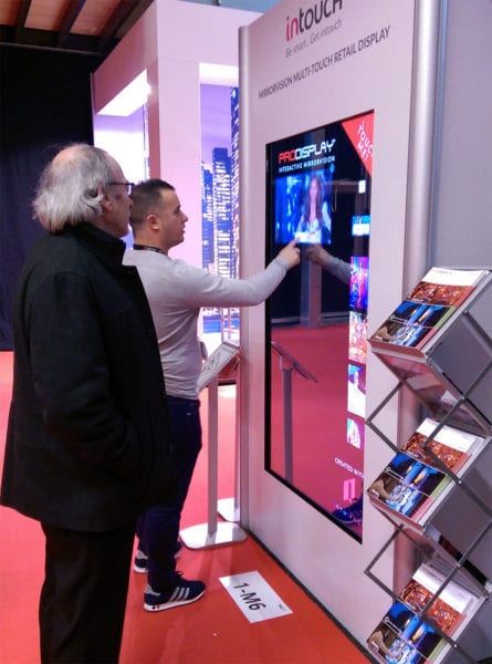 Adding multi-touch interactivity to HD and 4K mirrored screens delivers a uniquely engaging display solution. The interactive mirror can be custom made for integration into walls or partitions, or surrounded with a modern or traditional frame to create a stunning focal point for retail and hospitality environments. We created our interactive mirror content with the excellent Intuiface multi-touch interface software from Intuilab: