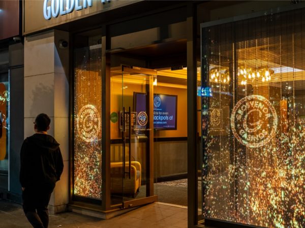 These screens we’re used to great effect at the Golden Horseshoe Casino, who used our Transparent LED Screens to entice passing traffic. The atrium lacked floor space and needed a solution where the view from both sizes wasn’t restricted. They chose to use a mixture of holo effect and striking content using the brand colour palette on both transparent screens, creating a display that was eye catching without being overwhelming.