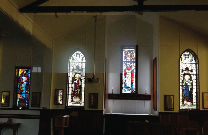 The switchable projector screen solution enables the church to keep the screen in a prime viewing location, whilst providing an unobstructed view of the beautiful stained glass windows behind it when not in use.