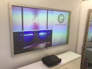 Standing out brilliantly, thanks to the high brightness of the product, this screen was showcased using a UST projector, demonstrating how conservative it can be on space without compromising on quality. Indeed, use of the UST laser projector showcased superior quality that these 2 technologies produce when working together.