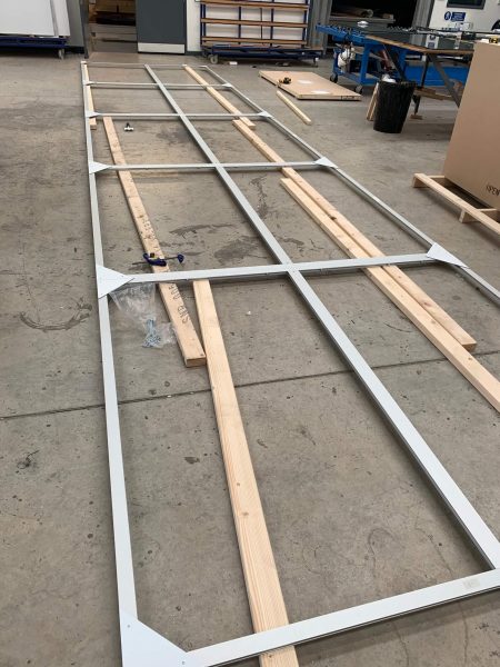 In order to create this unique aluminium frame, several important factors had to be considered. The first was manufacturing a structure that could be broken down and reconstructed on arrival due to its size and shipping implications. We did this by building the framework so it could be broken down into 5 individual pieces, each numbered for easy of installation when it reached its new home in Vietnam. As well as this, we also had to consider the fixings for the screen as it was being suspended from the ceiling and needed to make sure there would be no bowing or warping when the screen was installed.
