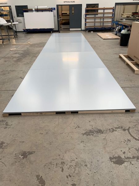 This impressive Ultra Gain Front Projection Screen covers almost the full width of the room, displaying everything from flight paths to CCTV cameras, all designed to appear on the screen in front of the relevant staff for their convenience. Our custom designed screen integrates perfectly into the workspace, working perfectly in the bright lighting conditions with no compromise on the existing working environment. As well as our rigid high brightness Ultra Gain Front Projection Screens, we also offer a self-adhesive film option, ideal for retrofitting to existing glass or acrylic surfaces. Our Ultra Gain Front Projection Film allows you to get the most out of your space, utilising window space or internal glass partitioning to create displays with perfect colour reproduction.