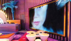 The countdown to the launch of the Rolls Royce Dawn using a switchable projector screen