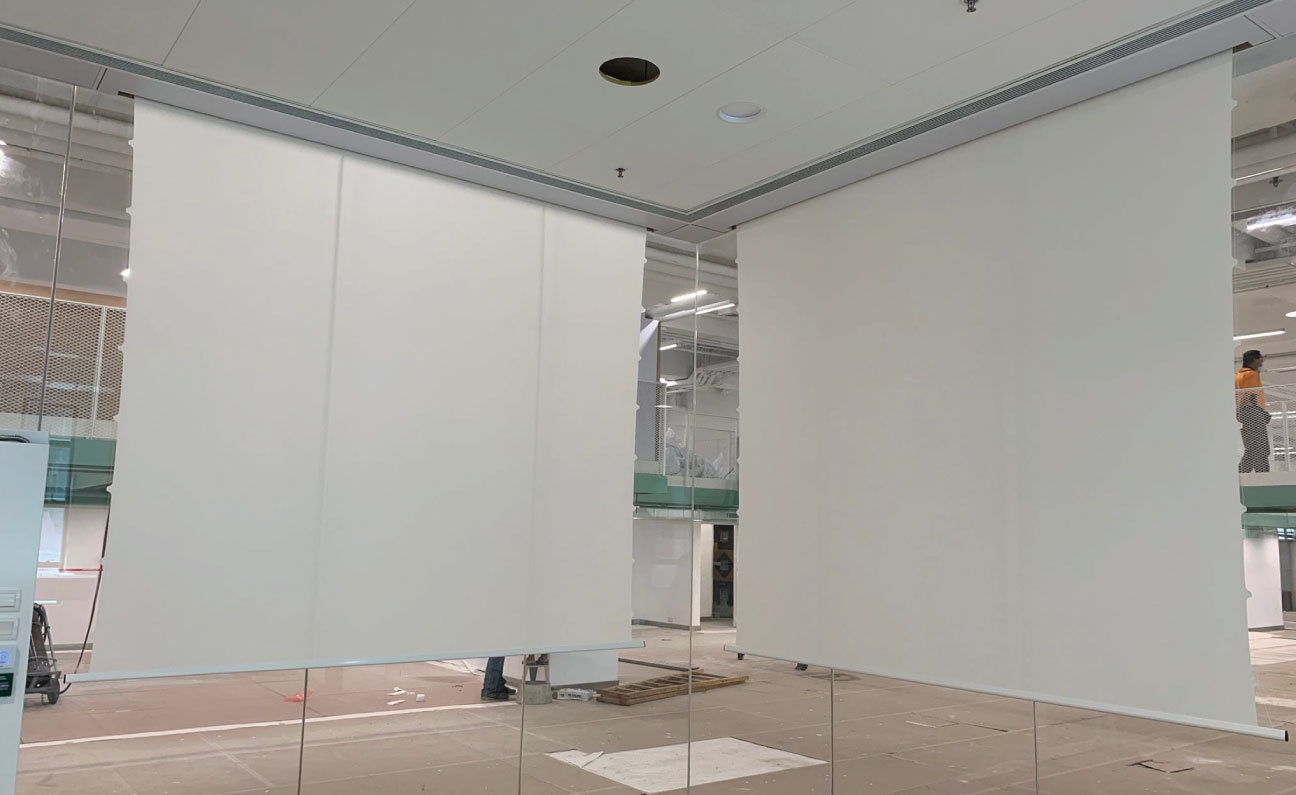 Electric Roll Down Projection Screens available with front, rear or dual-sided projection capabilities.