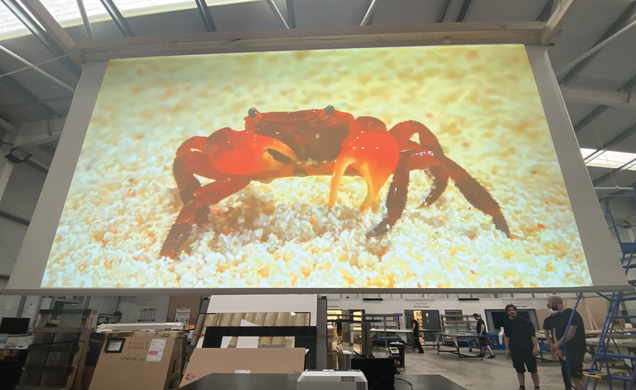 The largest motorised projection screen we can manufacture is 5m wide, with standard sizes including 80″, 100″, 120″ and 132″.