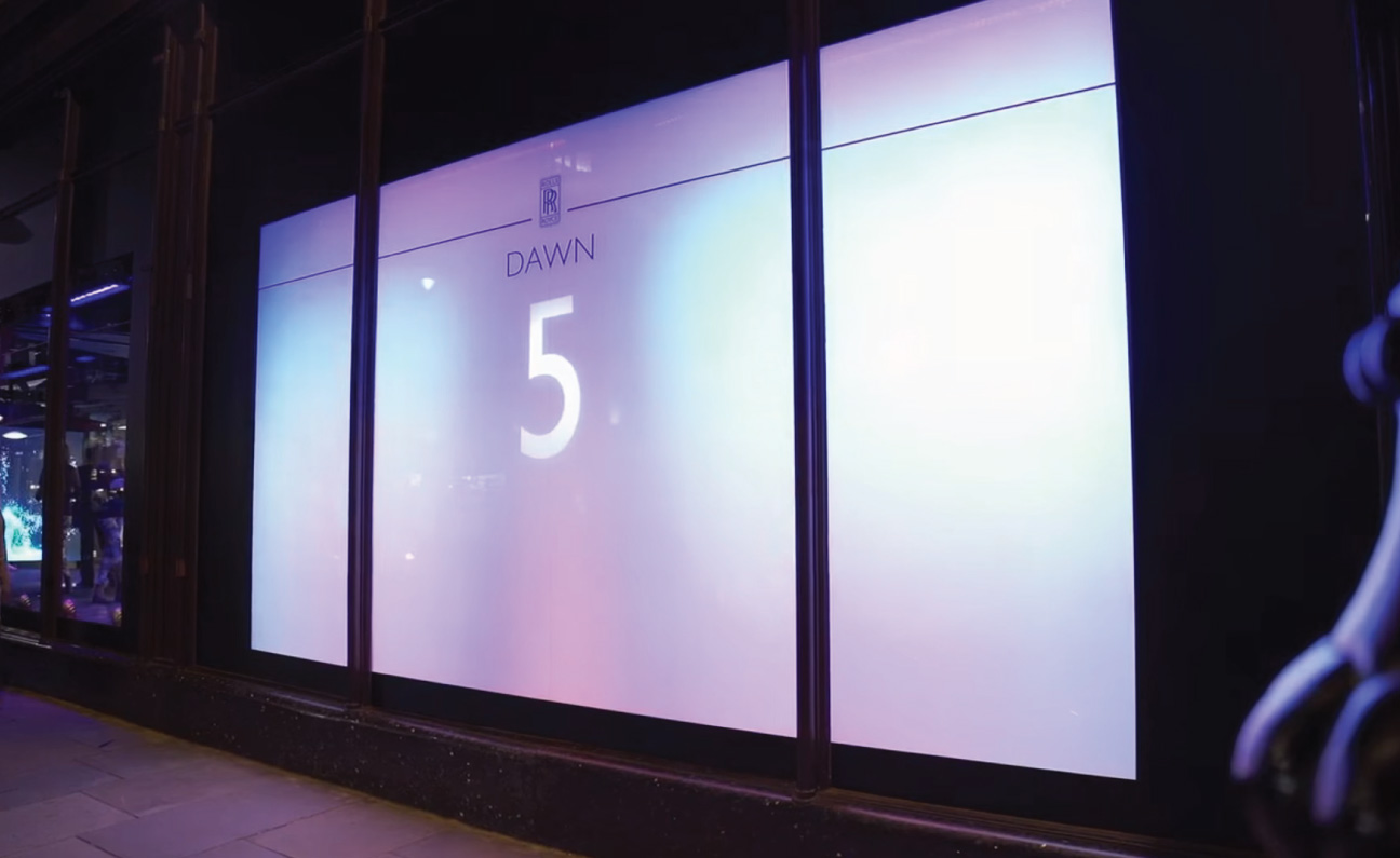 Smart Film is also a brilliant way to build momentum for product launches, a brilliant example of this being our project with Rolls Royce, where switchable film was applied to the prestigious windows of Harrods. The Switchable Film was connected to a timer, working alongside a projected countdown on the film that caused audiences to gather outside to see what would be revealed when the timer ran out. When the countdown ended the film would switch from frosted to clear, with the projection stopping to reveal Rolls Royce’s newest model in all its glory.