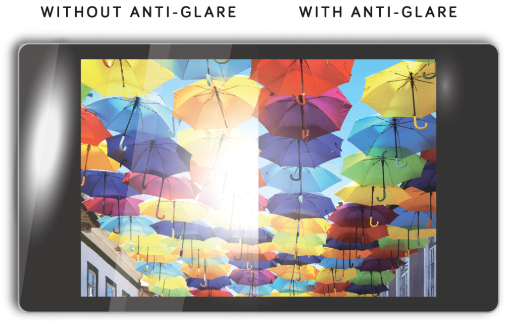 Pro Display AG Glass provides an Anti Glare / Anti Reflective surface that provides the ideal solution to reduce glare and to diffuse harsh reflections on screens affected by high ambient light and sunlight.