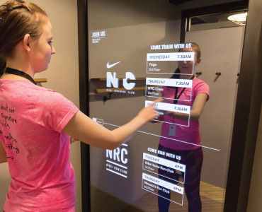 We’ve worked with world renowned brands to provide interactive technology including Nike, who we supplied with our Interactive Mirrorvision Displays for NikeTown, London. Our Displays were integrated into the changing room design to provide a unique and memorable fitting experience for female Nike customers, in a place that would usually lack engaging advertising. We have also worked with Sky Sports, providing Interactive Glass Overlays to aid an integral segment of their daily broadcast showing match results, transfer details and other sports related data.