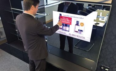 Using touch screen mirror displays in retail and POS environments is a great tool to drive sales and improve customer experience. Not only is their presence a surprise due to their unique nature, clever placement of Magic Mirror Touch Screens in fitting rooms also gives businesses an exclusive opportunity to upsell similar or related products at the most important point of the customer journey, providing a more personalised service to the user.