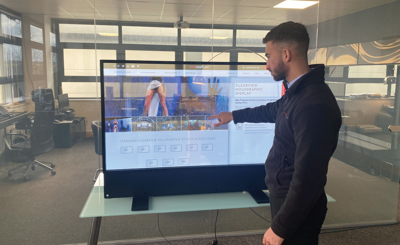 We also offer alternative transparent touch screen technology including our Clearview Rear Projection Interactive Touch Foils, a transparent rear projection foil with through glass touch capabilities and our Interactive Transparent OLED, a high end transparent touch display with no requirement for backlighting and stunning HD 1080p image reproduction. We also offer an interactive switchable glass projection screen where the glass can be switched from frosted to clear on demand, giving touch screen glass a whole new meaning!